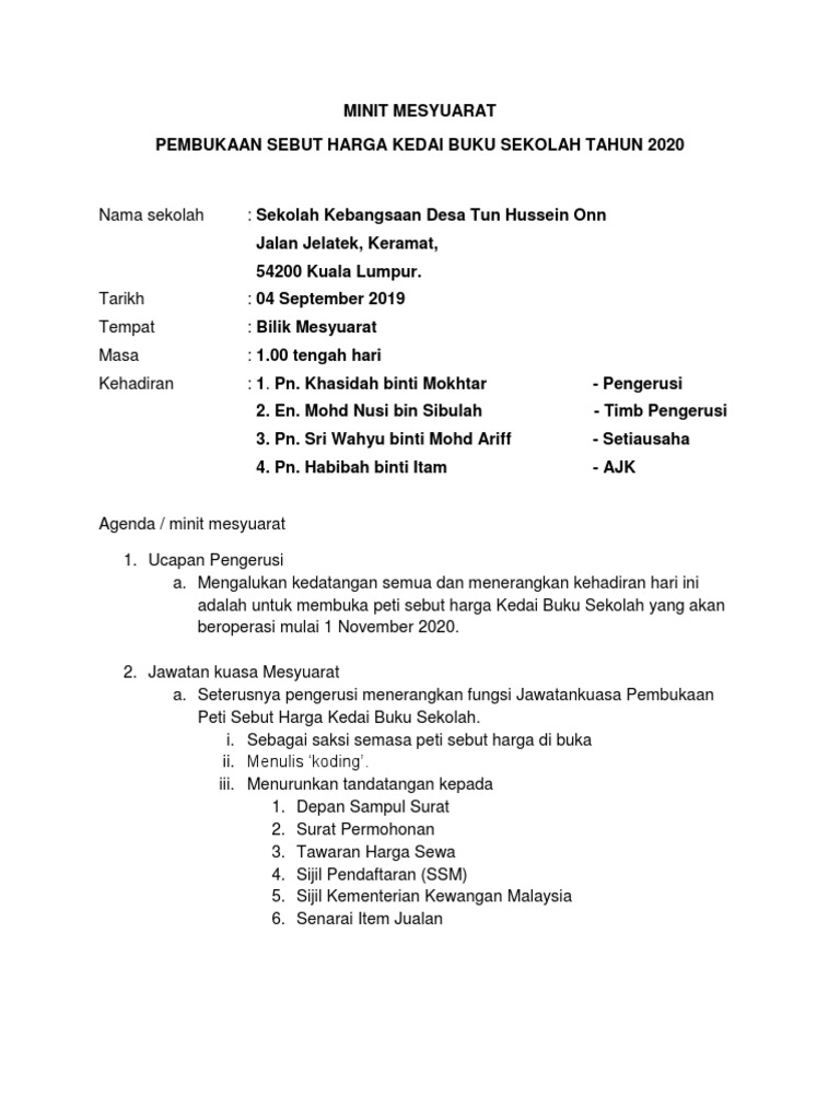 Minit Mesyuarat Buka Peti Kedai Buku 2020 Pdf